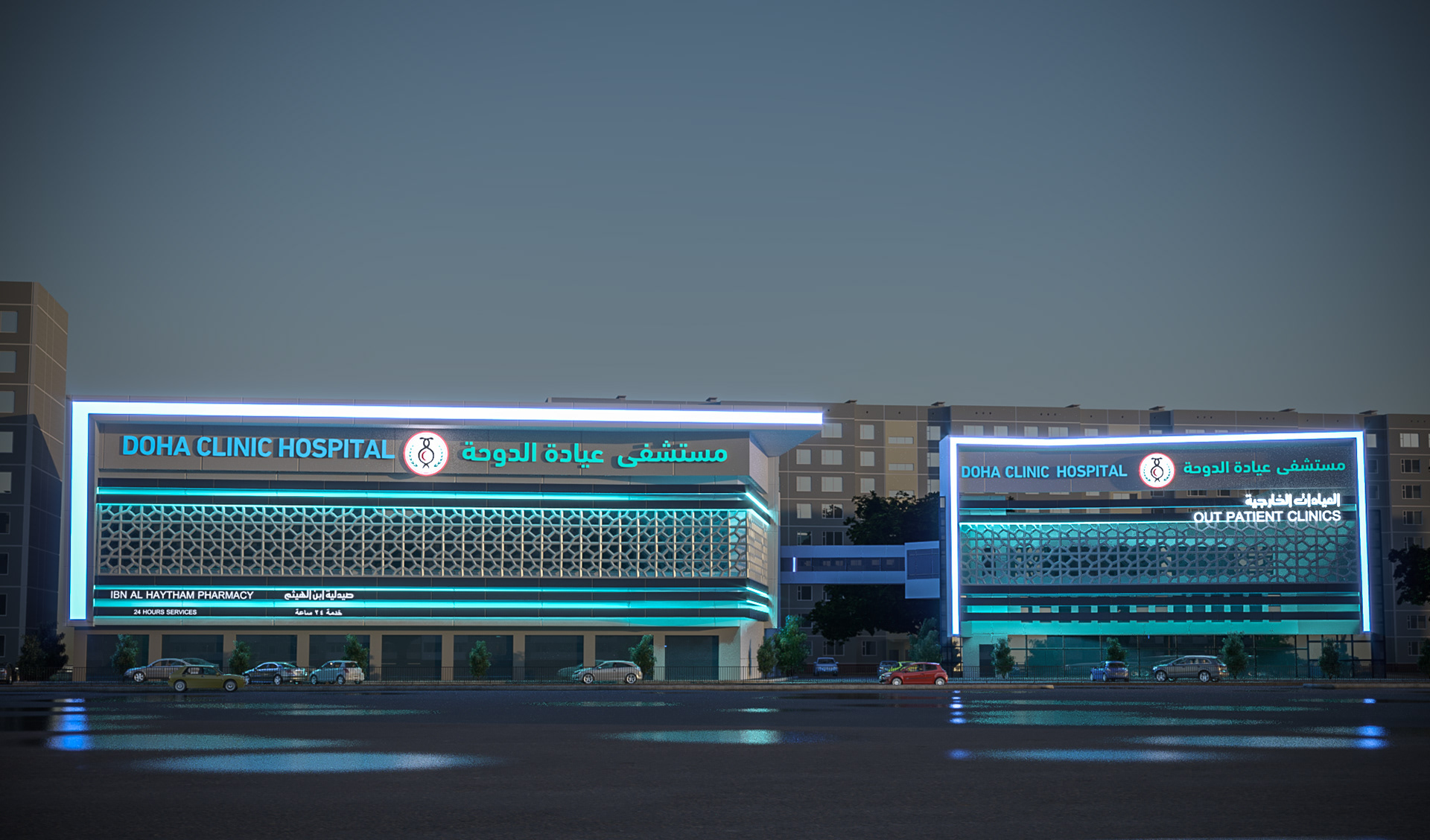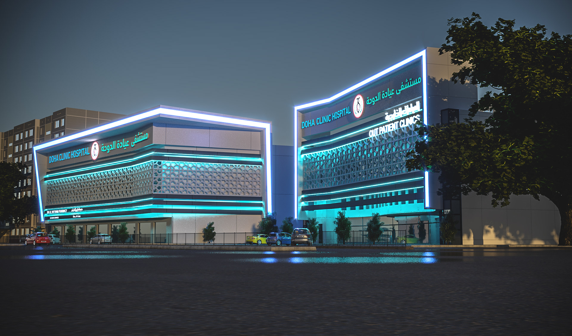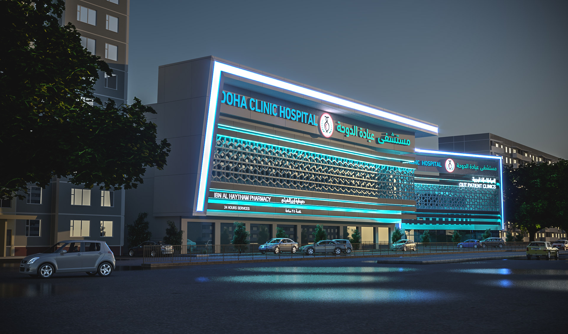 THIS IS A REDESIGN FOR AN EXISTING FACADE , THE MISSION WAS TO GIVE THE BUILDING THE SPIRIT OF THE HOSPITAL BRAND.