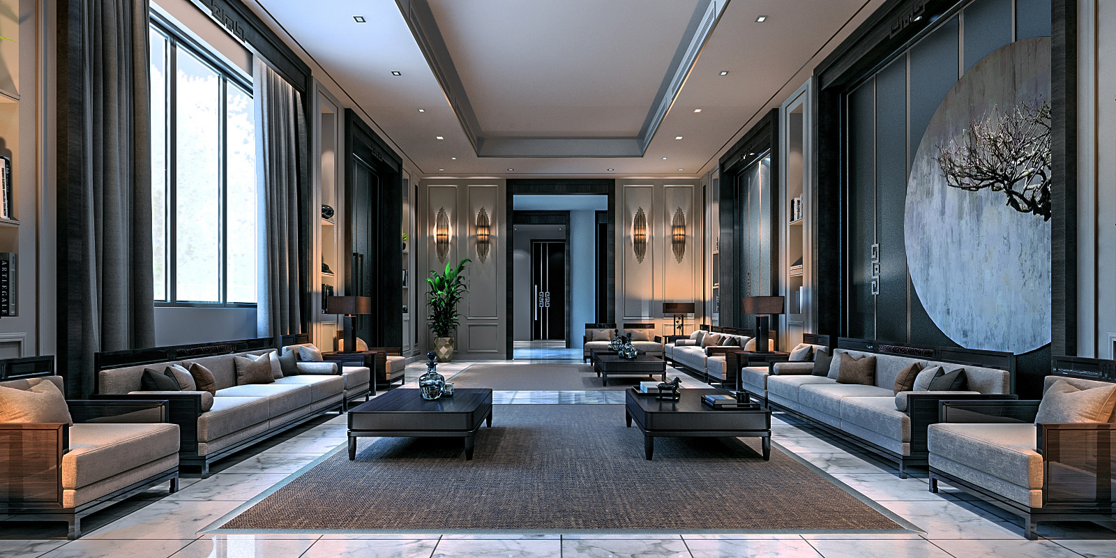 -A formal Majlis designed in contemporary style , i used dark theme and browns palette to confirm its formal use.
