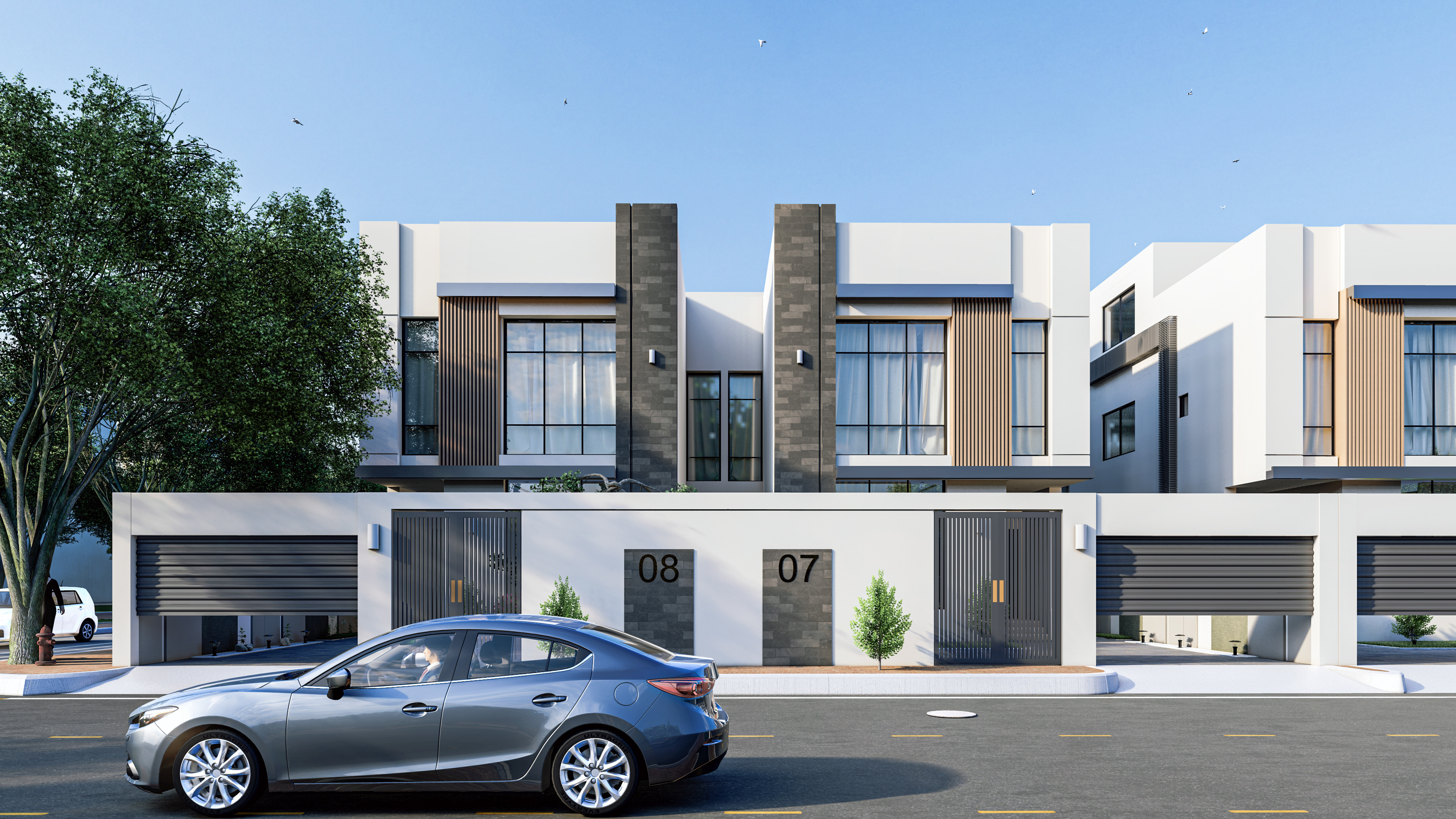 Introducing my latest design project: a stunning residential compound consisting of 8 twin villas, each with a plot area of 500 sqm. As the lead designer, I was responsible for the façade design and the overall modeling and visualization of the project.