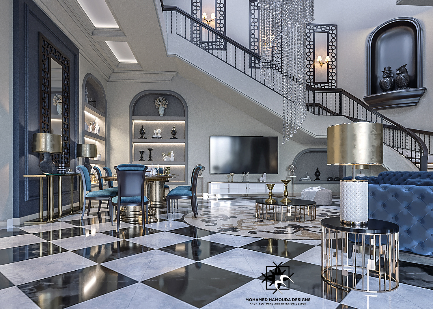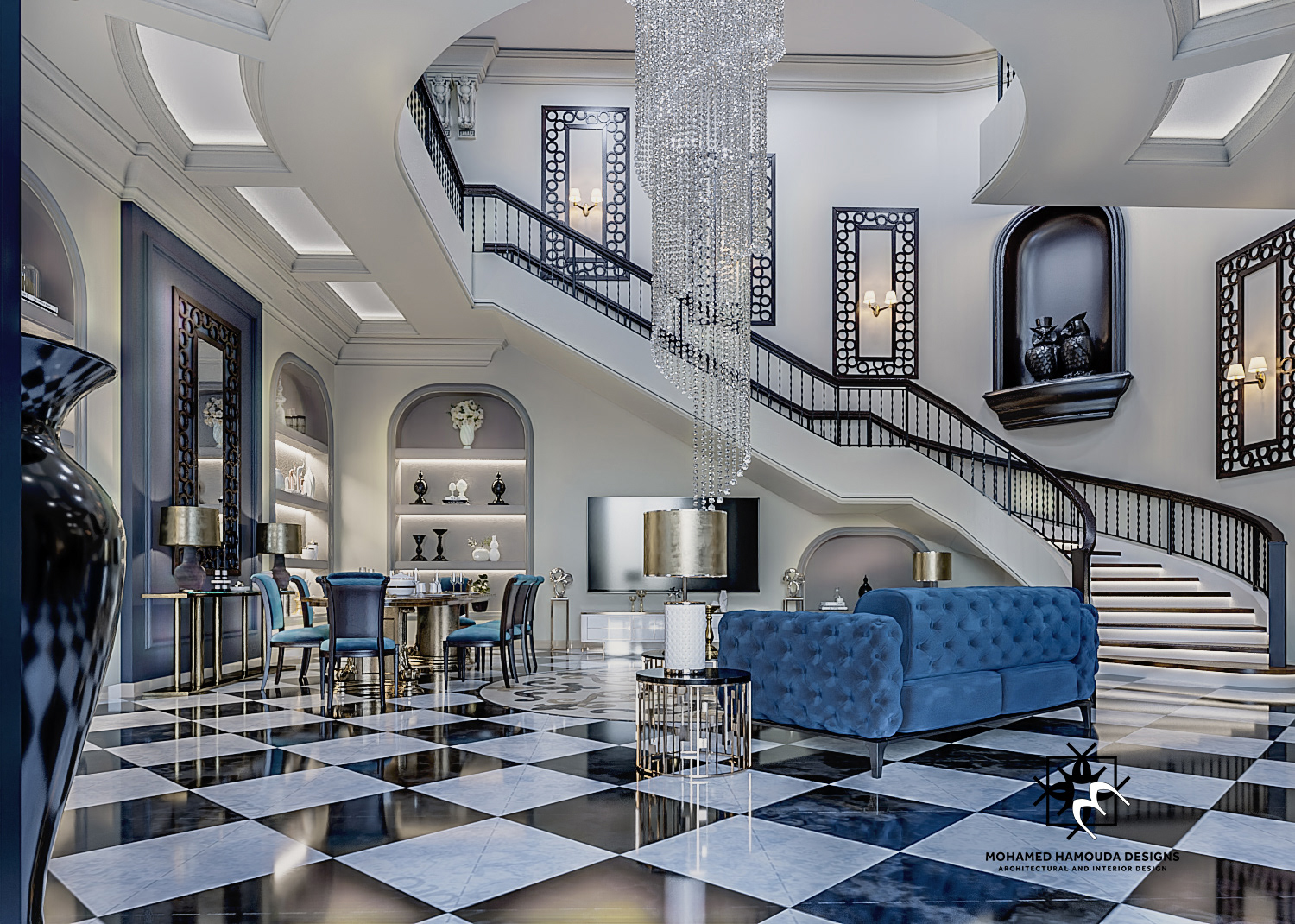 A NEOCLASSIC INTERIOR FOR A STAIR LOBBY IN A PRIVATE VILLA